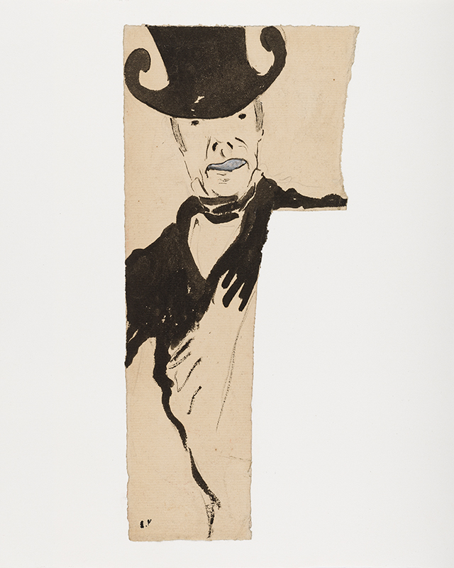Trace de mine de plomb, lavis d'encre de Chine et aquarelle sur papier, cachet de l'atelier en bas à gauche.