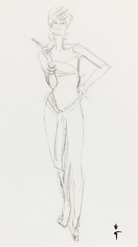 Etude pour une illustration parue dans Madame Figaro, 15 mars 1986, modèle d'une robe Guy Laroche.